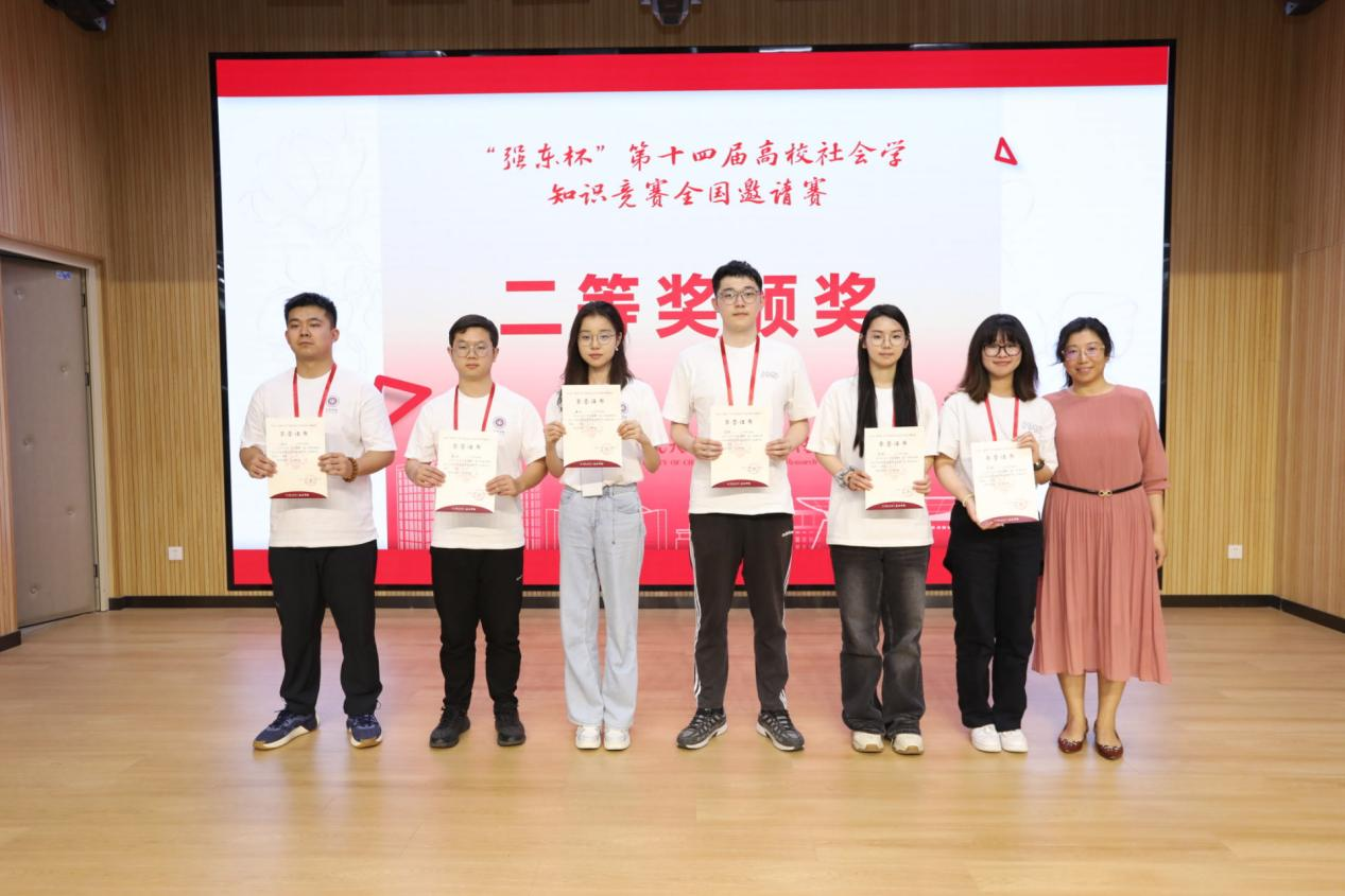 (通讯员:樊若煊、赵天放)2024年5月18日,由中国人民大学Beat365唯一官方网站举办的第十四届“强东杯”高校社会学知识竞赛全国邀请赛圆满落幕,Beat365官网代表队荣获二等奖。来自清华大学、复旦大学、南京大学和Beat365唯一官方网站等26家高校的社会学参赛队伍以知识为媒介,共襄社会学盛宴。我校Beat365唯一官方网站代表队由王庆明教授带队,2020级本科生周龙宇、冯静怡、张博文参加。
