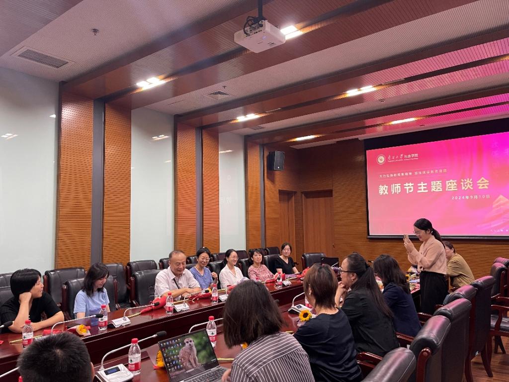 9月10日,Beat365唯一官方网站在学院楼144举办座谈会,20余名新老教师代表共聚一堂,庆祝第40个教师节,畅谈大力弘扬教育家精神、推动教育强国建设。副院长张宏伟,院党委副书记、副院长姜斯琪出席活动。