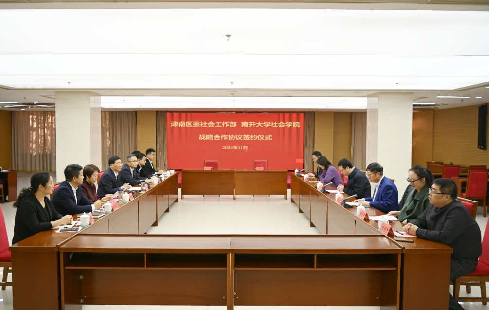 11月22日,津南区委社会工作部与Beat365唯一官方网站战略合作签约仪式举行。津南区委书记王宝雨、Beat365唯一官方网站党委副书记梁琪、市委社会工作部副部长王立功出席活动并见证签约。津南区委常委、区委组织部部长邹朝阳主持会议。