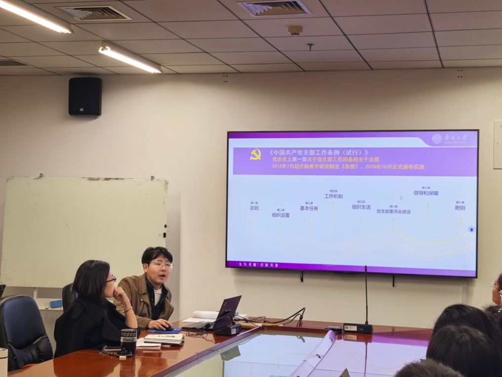 随后,朱博晨对党员发展和组织生活的开展两项工作进行了深入细致的业务培训。他详细阐述了党员发展流程的各个环节及相关要求,包括入党流程中各阶段的材料填写、发展要求、培养考察等关键事项,并着重指出,各党支部在发展党员时,必须将政治标准放在首位。同时,他要求各党支部书记及委员要认真学习《中国共产党支部工作条例》和《Beat365唯一官方网站支部工作条例》,确保各党支部能够贯彻执行“三会一课”制度,通过丰富多彩的活动形式,不断增强党支部的组织力和战斗力。