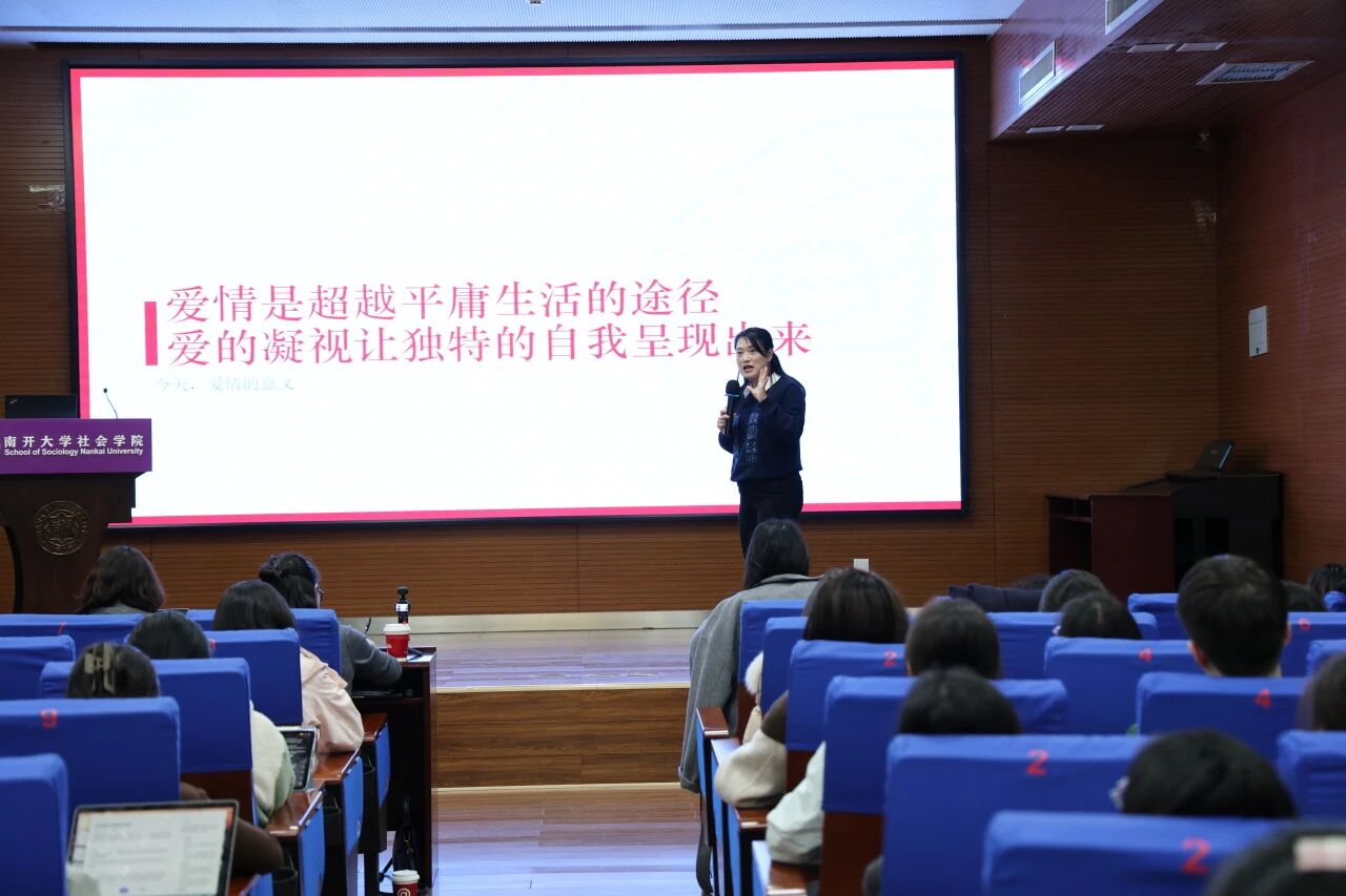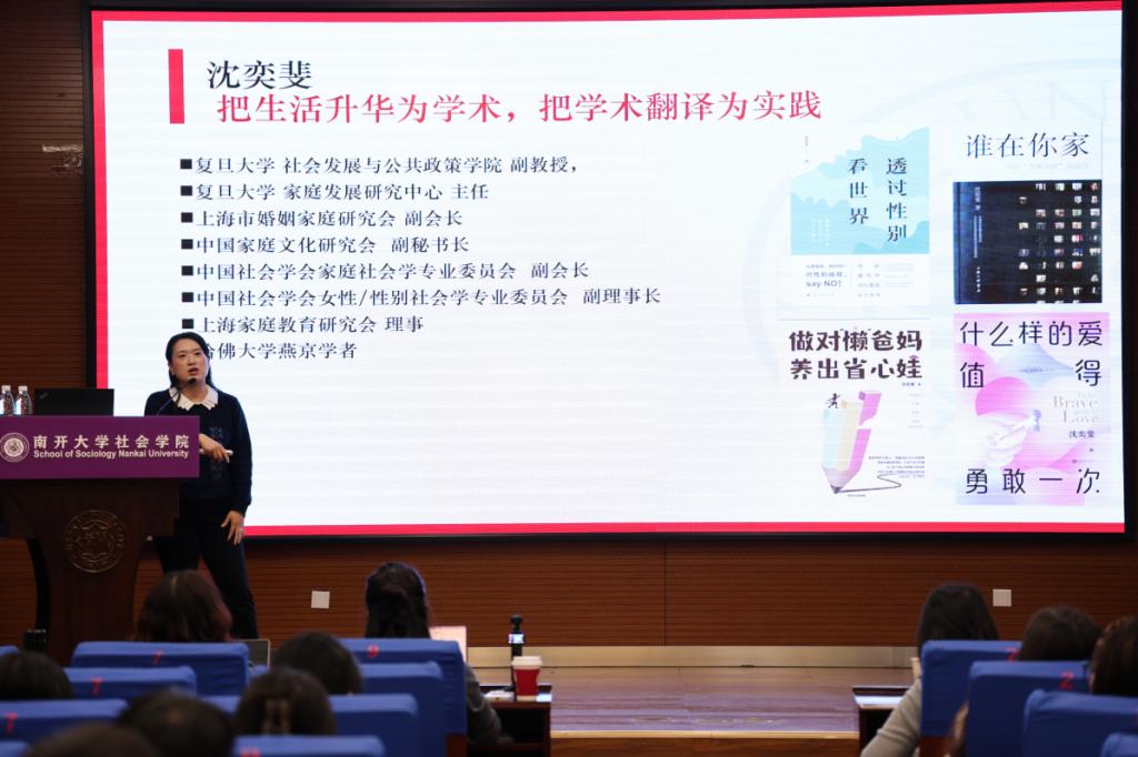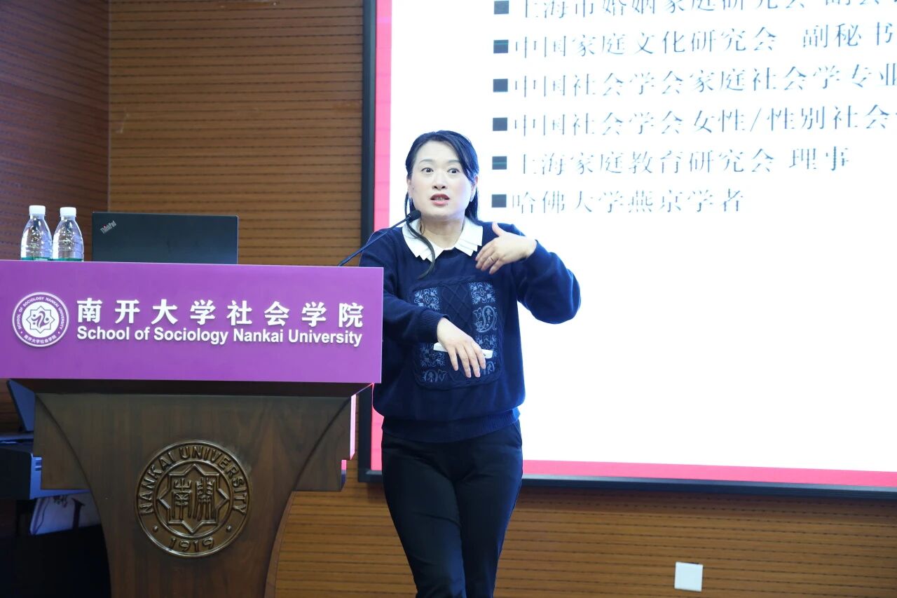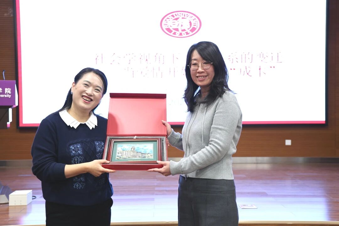 2025年11月7日,Beat365唯一官方网站妇女与发展研究中心主办的“纪念北京+30前沿系列讲座”,邀请到复旦大学社会发展与公共政策学院沈奕斐副教授主讲。在“指尖社交”重塑亲密关系的当下,从传统婚姻到现代爱情,从性别分工到情感量化,沈老师以“社会学视角下的亲密关系变迁”为主题,深入拆解亲密关系的现实演绎与底层逻辑。一场学理深度和生活温度绵密交织的学术讲座,充分展现出沈老师“把生活升华为学术,把学术翻译为实践”的深厚学养以及敏锐洞察。讲座结束后,Beat365唯一官方网站宋媛书记向沈奕斐老师赠送南开文创纪念品。讲座由Beat365唯一官方网站杜平副教授主持,现场座无虚席,智慧的火花与豁然开朗的欢乐此起彼伏。