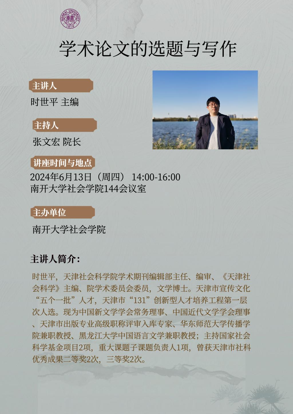 讲座时间:2024年6月13日 周四 14:00-16:00