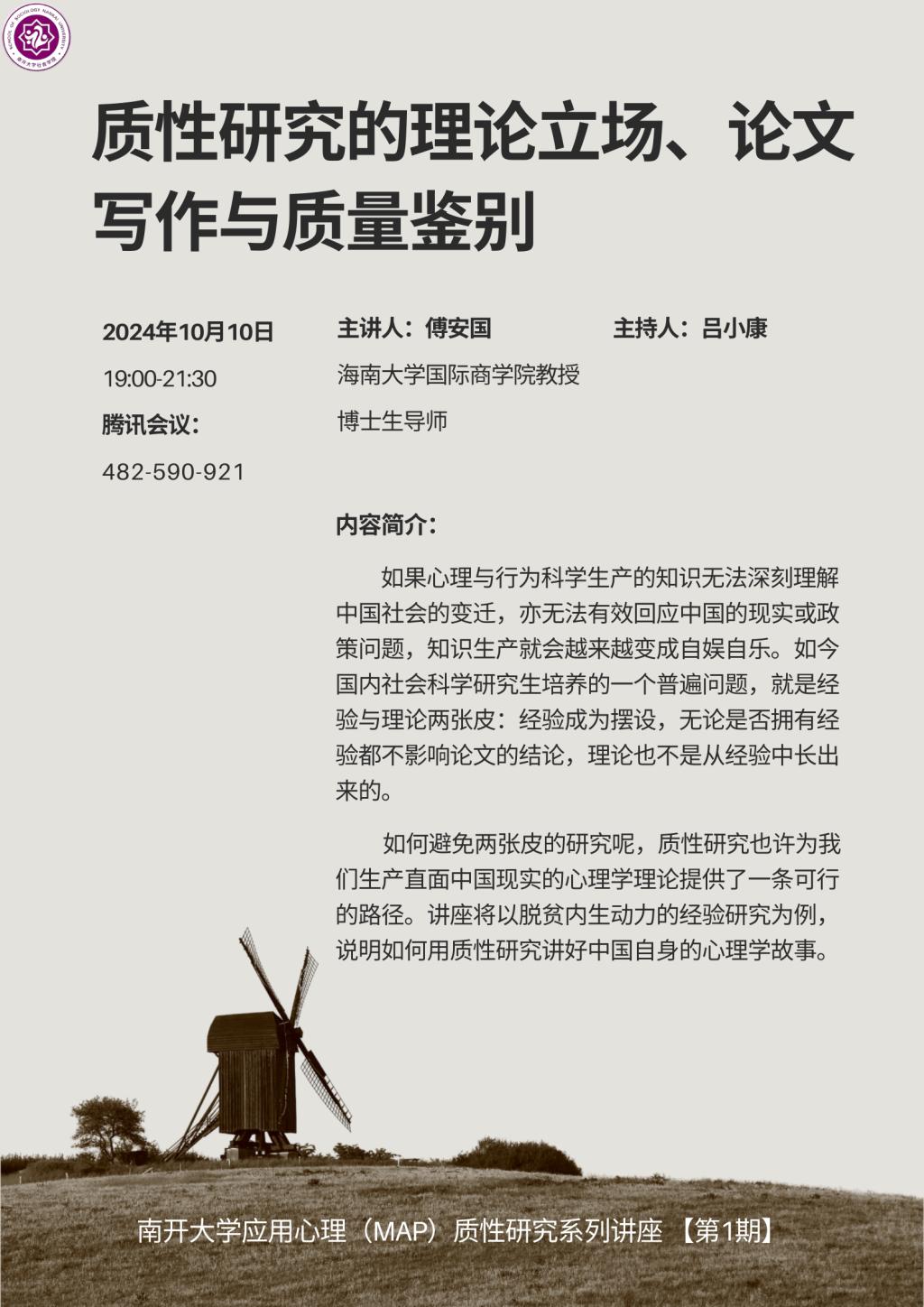 讲座题目:质性研究的理论立场、论文写作与质量鉴别