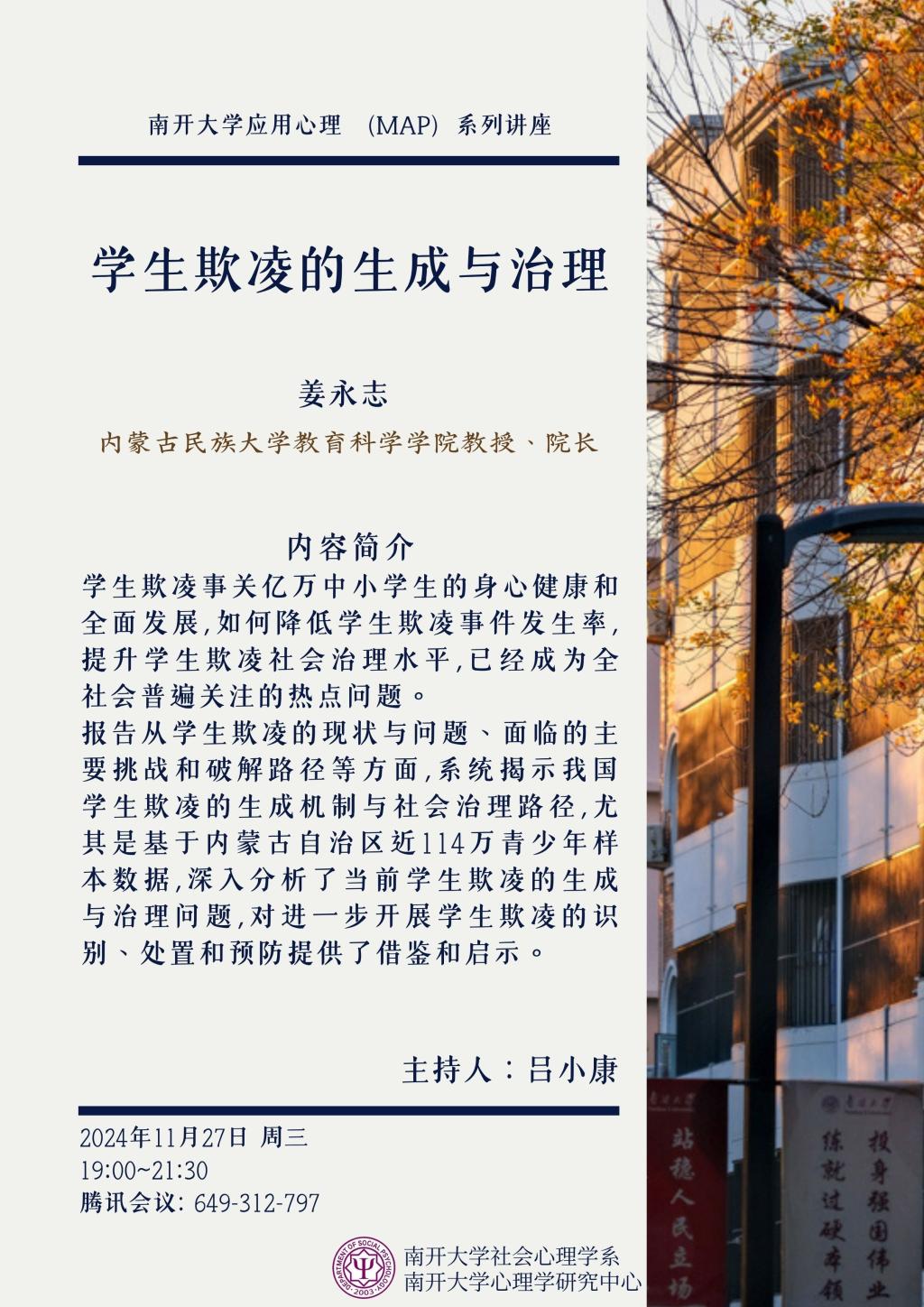 【主讲人】姜永志 内蒙古民族大学教育科学学院教授、院长