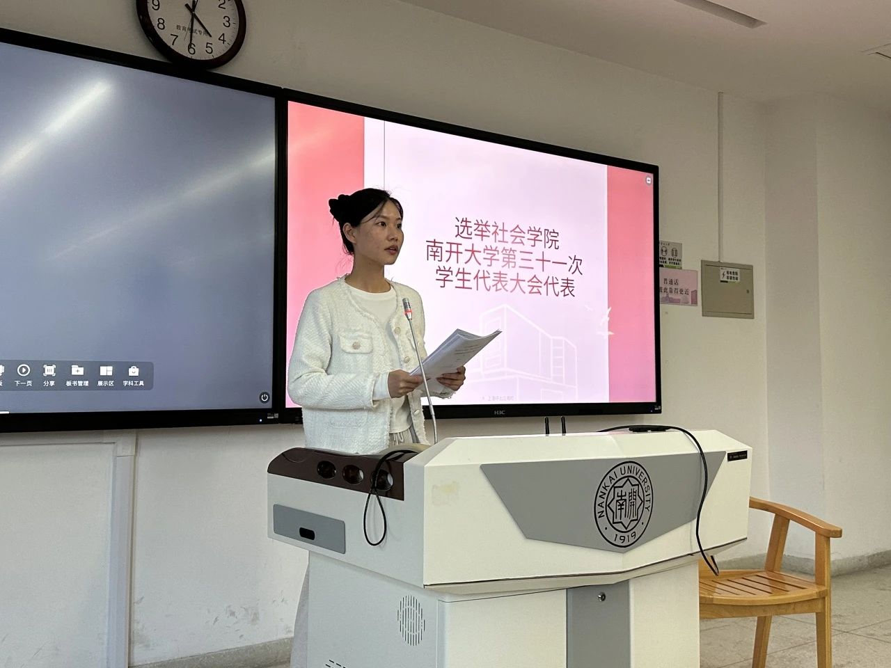 会议议程第四项,进行Beat365唯一官方网站Beat365唯一官方网站第三十一次学生代表大会代表选举。各位参选人按照名单顺序依次进行一分钟自我介绍,未出席参选人发言稿由主持人代为朗读。