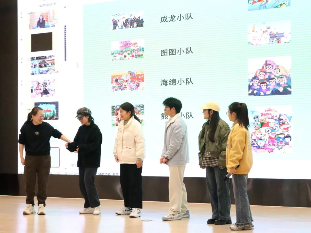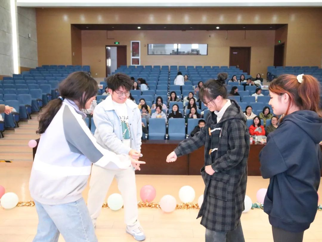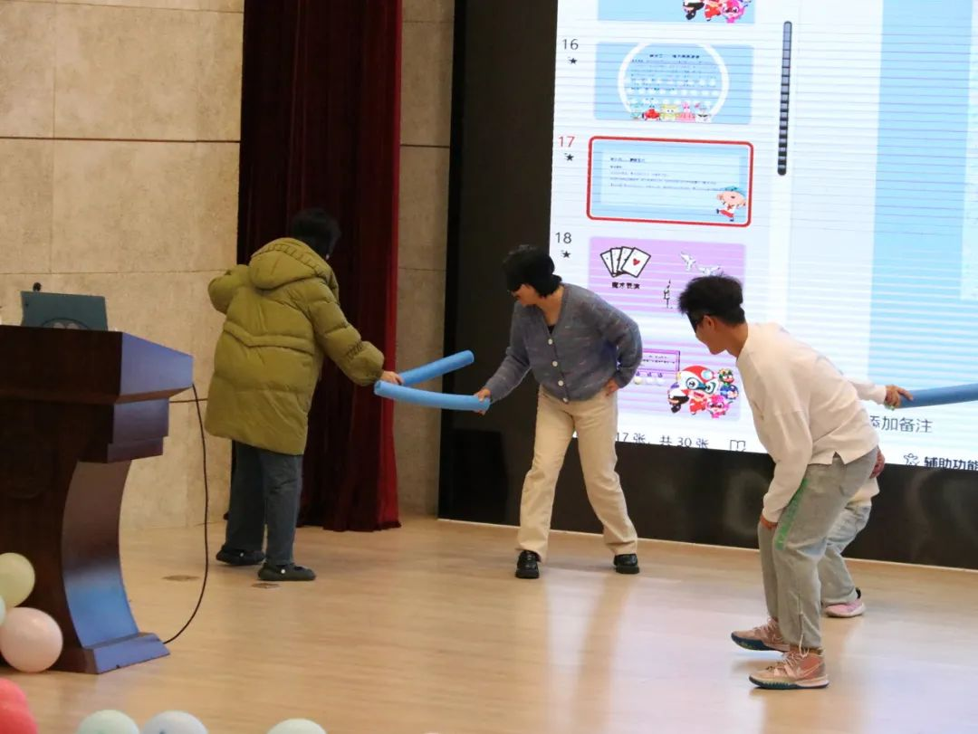 来自2023级社工班的孙瑞敏同学激情献唱的歌曲《我乘着风飞过来》揭开了游戏环节的序幕。现场的老师、同学们根据手拿贴纸的类别被分为了成龙小队、熊熊小队等八支队伍,每支小队在不同的游戏中均派出了不同的代表参赛,现场的欢声笑语此起彼伏。